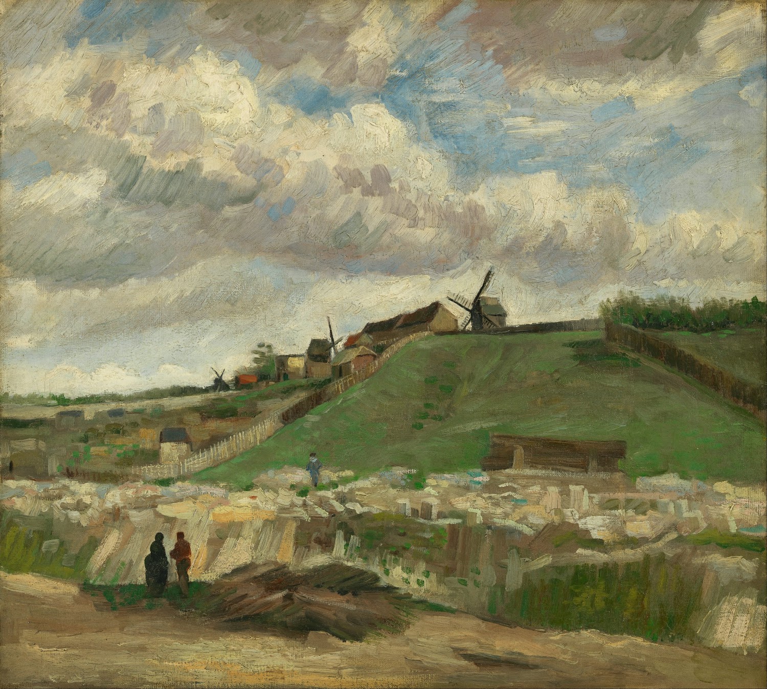 The Hill of Montmartre with Stone Quarry, painted by Vincent van Gogh in 1886, reflects the artist’s early Paris period. Moving to Paris marked a significant shift in Van Gogh’s style as he encountered the work of Impressionists and other modern painters. This painting showcases the Montmartre area, a district known for its artistic community and the quarries that once operated there.